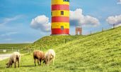 Ostfriesland erwartet seine Besucher mit vielen Facetten. Deiche und weitläufige, grüne Landschaften, Ebbe und Flut, Backsteinhäuser mit bunt blühenden Vorgärten und natürlich die raue Küste mit weitläufigen Sandstränden.