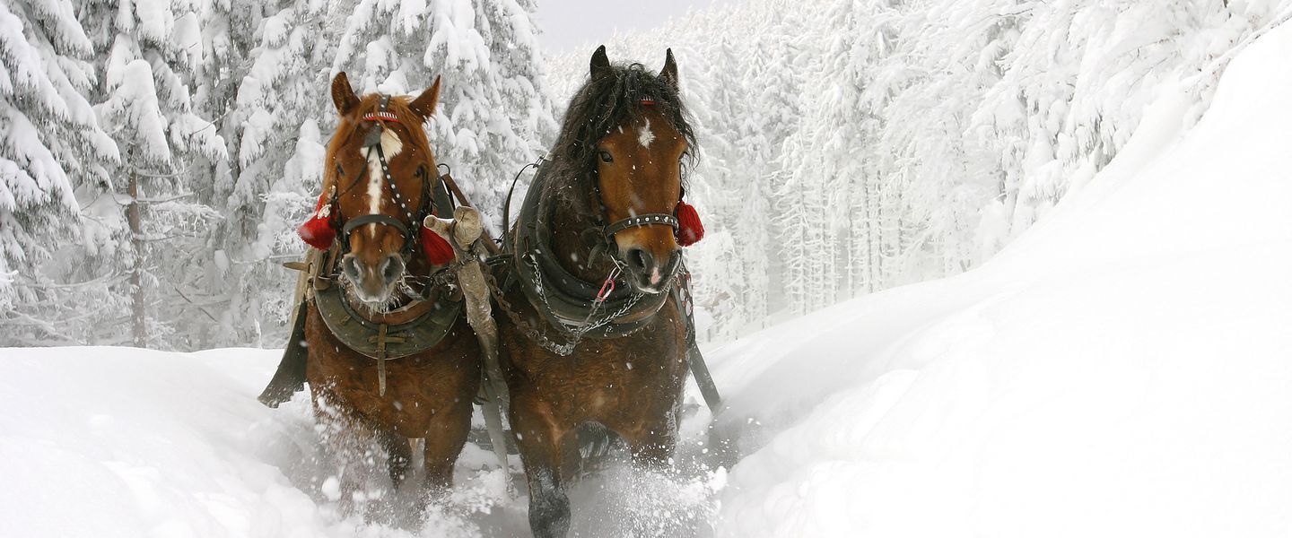 Begleite uns auf einer romantischen Pferdeschlittenfahrt durch die atemberaubende Winterwelt von Filzmoos. Die idyllische Ruhe und die schneebedeckten Berge werden dich verzaubern und dir unvergessliche Momente im Einklang mit der Natur schenken.