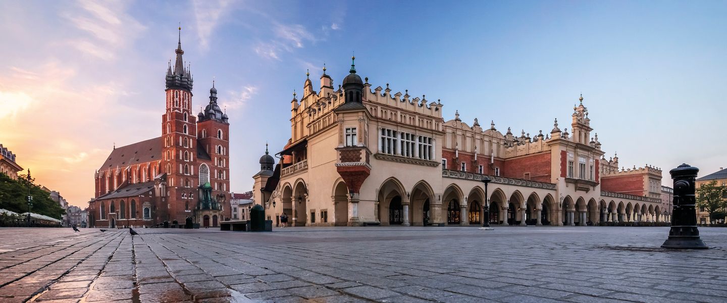 Der Marktplatz (Rynek Główny) von Krakau ist einer der größten mittelalterlichen Plätze Europas und das Herz der Stadt. Hier finden Sie das Tuchhallen-Marktgebäude und die beeindruckende Marienbasilika, deren Turm ein Wahrzeichen der Stadt ist.