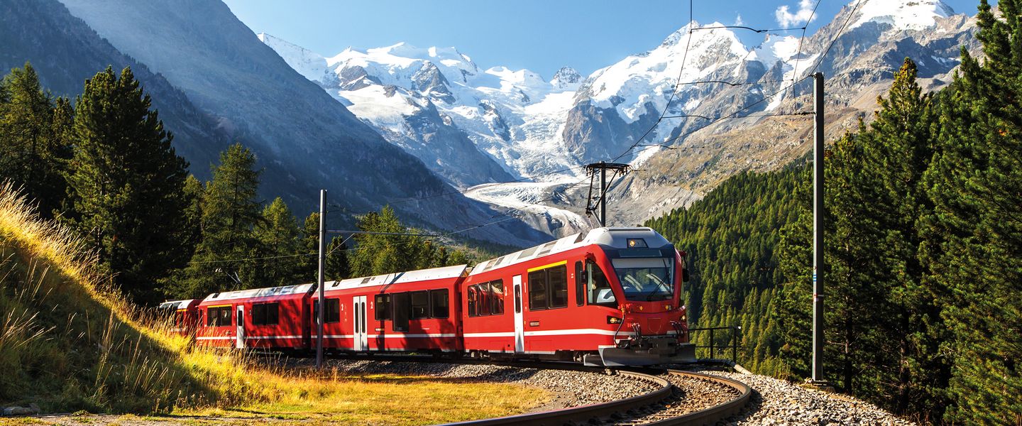 Entdecken Sie bezaubernde Landschaften der Schweizer Alpen! Genießen Sie die Fahrt mit dem malerischen Bernina Express, auch bekannt als The Red Train. Reisen Sie von Tirano in Italien nach Valposchiavo / St. Moritz / Davos und Chur in der Schweiz auf einer der schönsten Zugfahrten der Welt, die die magische UNESCO-Route zwischen Thusis - Valposchiavo und Tirano überquert.