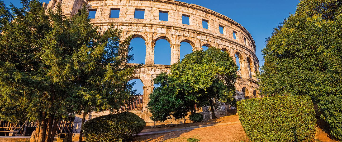 Ausstattung: Im 550 m² großen Wellness- & Spa-Bereich erwarten Sie ein Salzwasser-Innenpool, ein türkisches Bad, eine finnische Sauna, ein Eisbad und ein Ruhebereich mit beheizten Liegen. Darüber hinaus erwarten Sie ein komplett ausgestatteter Fitnessraum sowie ein Friseur- und Schönheitssalon mit 4 Anwendungsräumen. In den verschiedenen Restaurants des Park Plaza Histria genießen Sie Gerichte der traditionellen istrischen und der internationalen Küche. Auf den Terrassen der Cafés des Hotels genießen Sie die Aussicht auf die Adria. Pula ist für sein Amphitheater, eine der 6 größten weltweit noch erhaltenen römischen Arenen, bekannt.