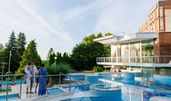Willkommen im Hotel Ensana Thermal Aqua, Ihrem perfekten Ziel für eine erholsame Busreise! Das Hotel liegt in einer ruhigen Umgebung, umgeben von malerischer Natur und nur wenige Schritte von den Thermalquellen entfernt. Unsere komfortablen Zimmer sind modern eingerichtet und bieten kostenfreies WLAN, einen Fernseher sowie ein eigenes Bad. Das Hotel verfügt über ein erstklassiges Thermalbad, ein Restaurant mit regionaler Küche und einen Wellnessbereich mit Sauna und Fitnessraum. Mit insgesamt 150 Zimmern bieten wir ausreichend Platz für Gruppen und Einzelreisende. Wir freuen uns auf Ihren Besuch!