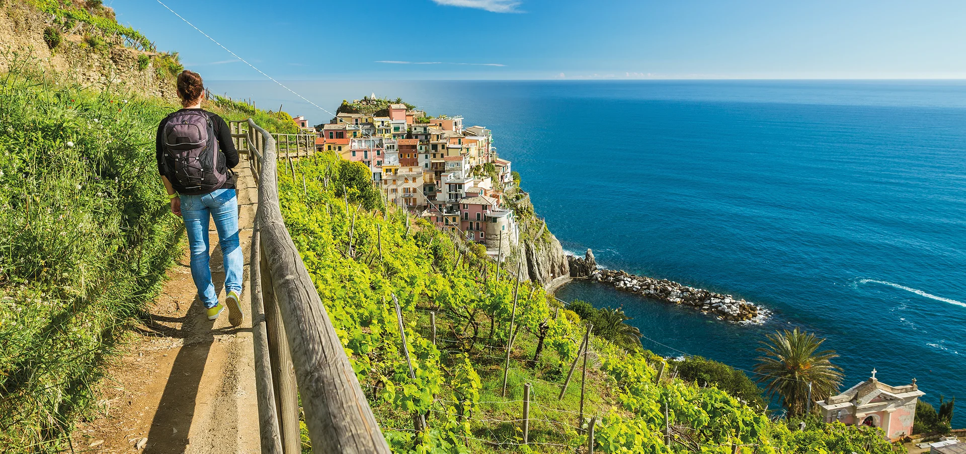 Die unberührte Landschaft der Cinque Terre ist von seltener Schönheit. Fünf malerische, verträumte Dörfer an der ligurischen Küste. Farbige Häuser an steilen Hängen, kleine Plätze mit bunten Booten, Treppenwege, Torbögen - es ist eine der bezauberndsten Landstriche der Welt.