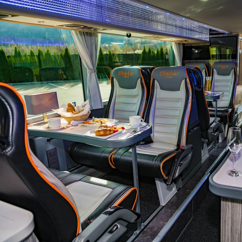 Das Herzstück unserer Premium-Sparte ist zweifellos der Luxus-Bistrobus Avantgarde. Vergessen Sie alles, was Sie bisher über Busfahrten wussten. Hier erwartet Sie eine neue Dimension des Reisens: